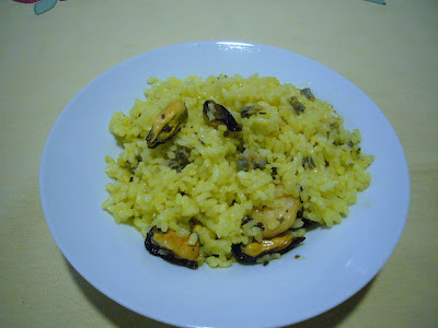 -Se cubre el fondo de la olla con aceite de oliva y se fríe un ajo en él. Se retira el ajo y se pone el arroz dándole unas vueltas.
